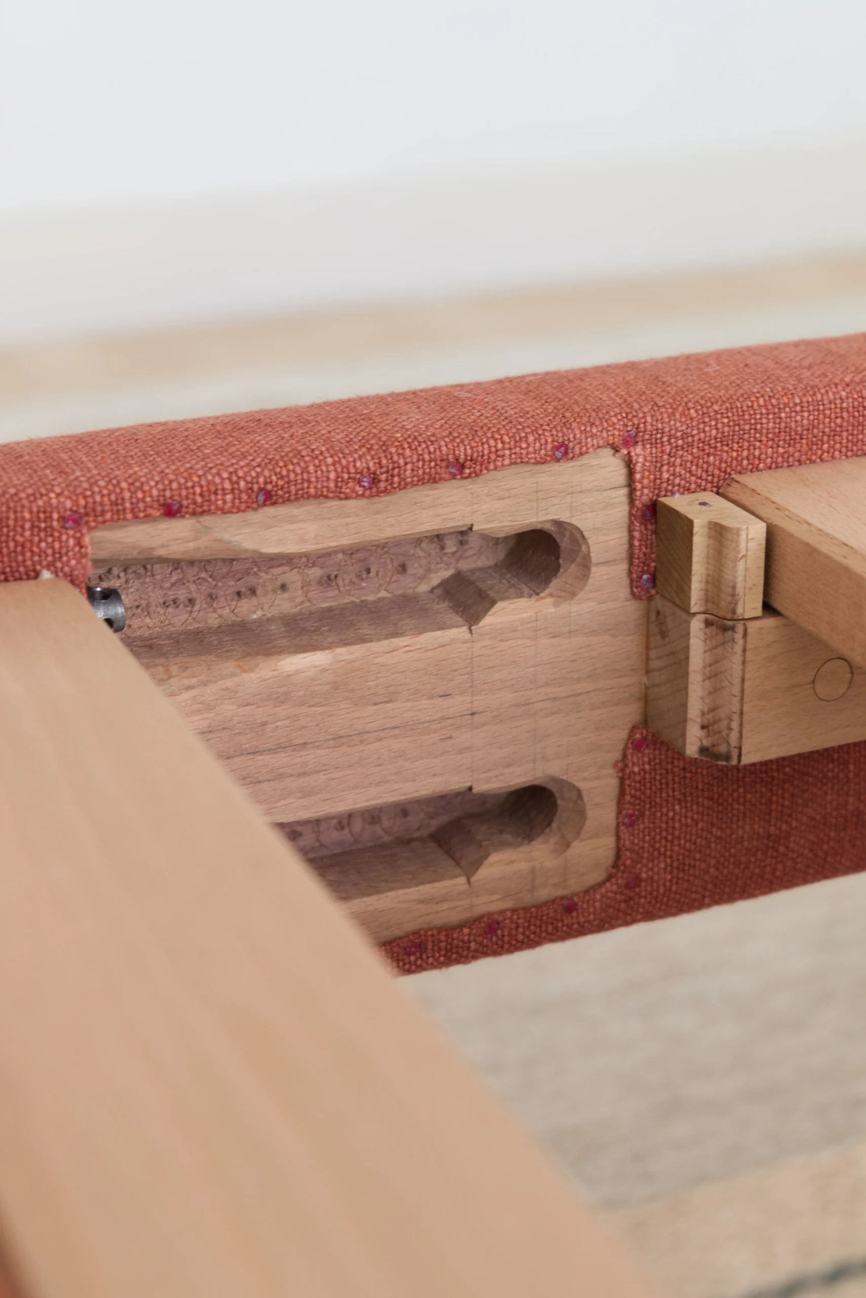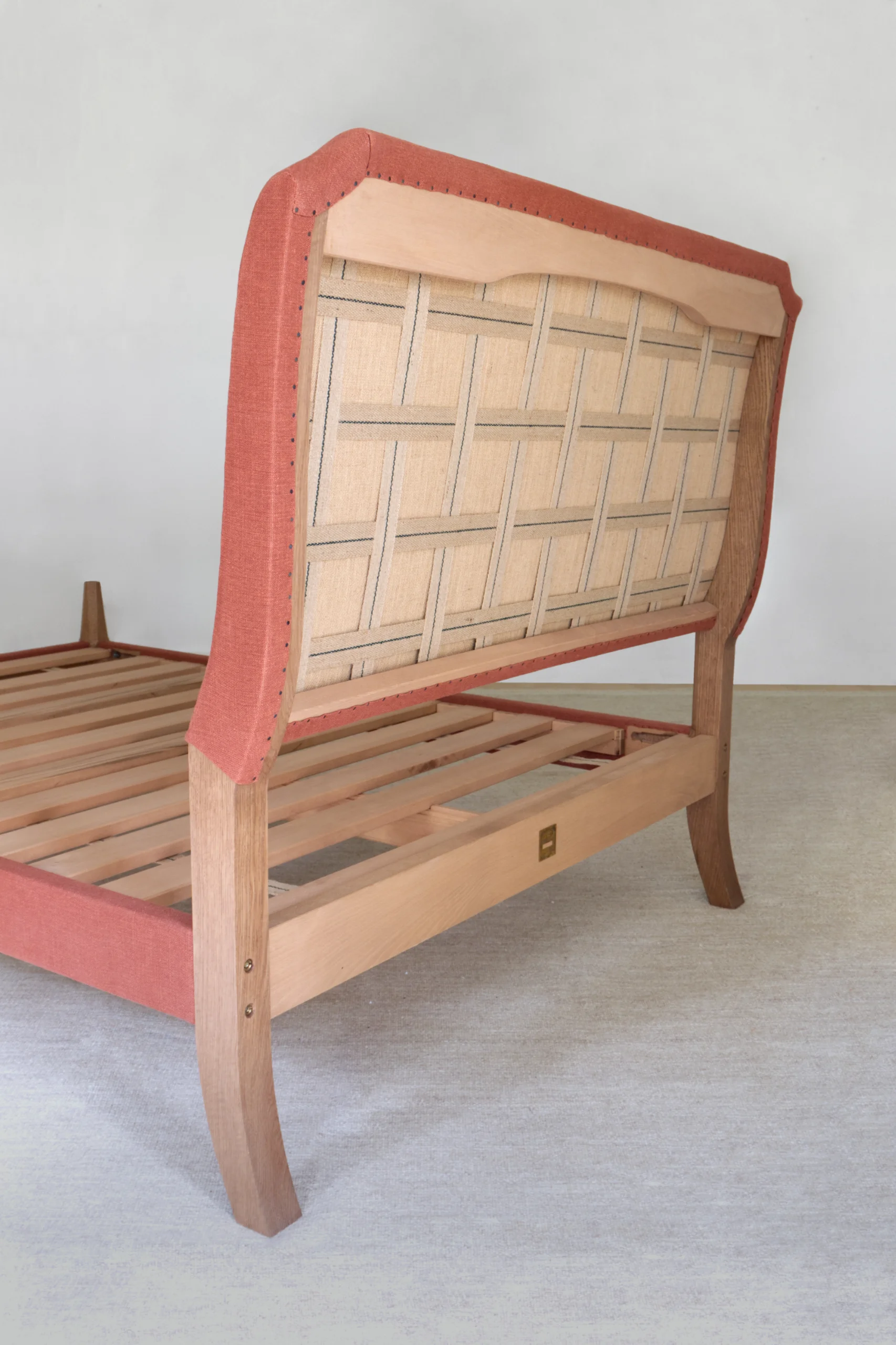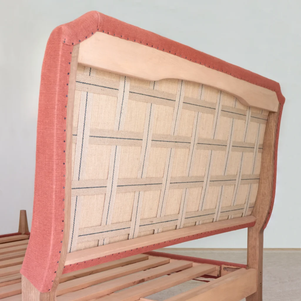 – A deconstructed version is possible with stitched hessian headboard and timber rails.